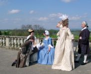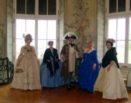 The next morning, at 10, we went to Schloß Niederweiden to attend the re-opening. It's a small and rather plain hunting palace, so there was not much to do but stand around decoratively. Outside, it was cool and windy, but at least the rain was letting up. The following picture was taken in the upstairs room where the frescoes evoke a jungle.