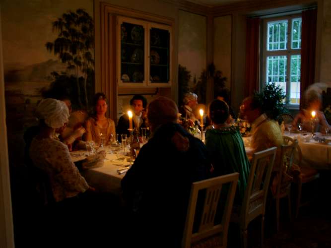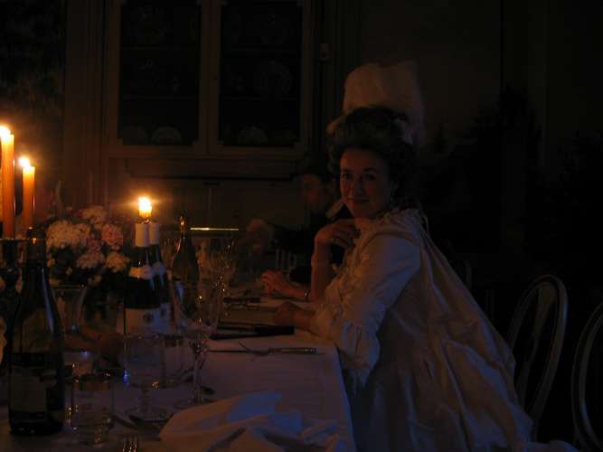 First of all, the organisers did a splendid job in finding the venue, hiring the servants, horses and coach, setting up the lunch pavillion and hiding its modern structure etc. I was particularly impressed by the fact that except for the wine bottles, the table setting was completely authentic: Correct porcelain, glassware, cutlery, water carafes and candle holders. Mind you, all that was not property of the castle, but organised especially for the event - even the breakfast tableware! Attention to such details is what makes such an event classy.