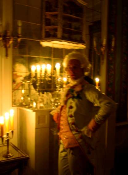 Dinner was served in the garden salon around 7 p.m. I cannot tell for certain since few of us wore a pocket watch. Unfortunately, the household was experiencing a shortage of servants so that the guests had to serve themselves. At least the cook had stayed! After dinner, the pary withdrew to the belle étage to listen to a recital. The music was bautifully performed by a soprano and a piano player, but apart from an aria or two by Maestro Händel, it was futuristic and had far too many notes in it. Composed by an Austrian baby named Wolfagang Amadeus, I was told, although how a baby could compose music, let alone write the notes, I was unable to learn.