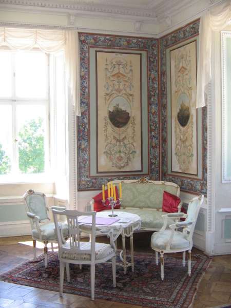 We were admitted into the inner sanctum! *gasp* A dream come true! The guide opened three boxes for us: One with corsets, one with a 1770s (?) robe, and one with a 1720s suit. We were allowed to touch the items, partially lift them out of their paper nests, and take pictures. I hope we made a well-behaved impression so that we may be allowed to come back one day. The guide specifically requested that none of the pictures be published on the internet, so I can't list any pictures.