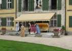 The thunderstorm grumbled all night but hardly managed to drive the heat away. The next morning was already as hot as the day before! As soon as beakfast was finished, the coach and horses arrived for the first outing. Jana and Marcus accompanied the coach on horseback. Meanwhile, the others spent the morning chatting (again!), walking in the park or simply idling. The coach came back after almost two hours, just in time for lunch. However, yet another thundestorm had drawn near and decided to unload its wet cargo just as we were supposed to betake ourselves to the pavillion in the park where lunch was to be served. After a while, many a seat had become slightly wet.