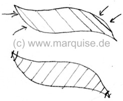 schräge Striche, die die Richtung vorgeben, in der die Kantillen darübergelegt